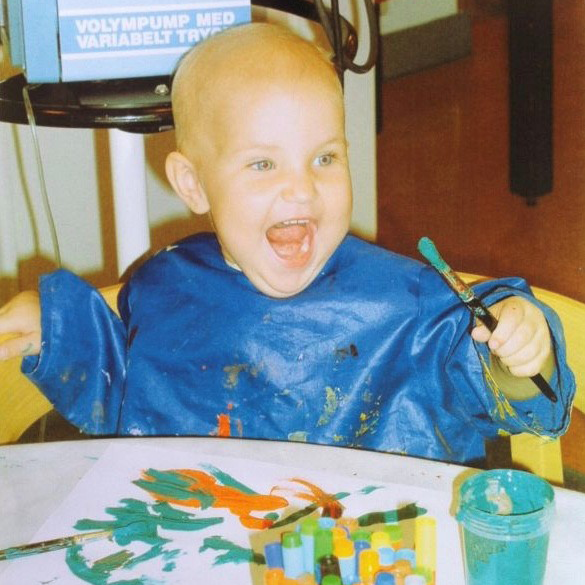 När jag var 1,5 år gammal blev jag sjuk. Jag fick hög feber, förlorade aptiten, var blek, blev alltmer trött och ledsen och hade svårt att komma till ro. En kväll när mamma skulle byta blöja på mig upptäckte hon en konstig liten röd strimma på min kropp. När jag vaknade dagen efter hade jag fullt med liknande strimmor överallt. Mamma och pappa åkte med mig till vårdcentralen som direkt skickade oss vidare till barnakuten. Efter undersökningar och blodprover fick jag diagnosen akut lymfatisk leukemi (ALL). Efter detta väntade 2,5 år av cytostatikabehandlingar, undersökningar, prover och operationer. Många, många dagar och nätter spenderades på Universitetssjukhuset i Linköping. Fem år efter avslutad behandling blev jag friskförklarad.