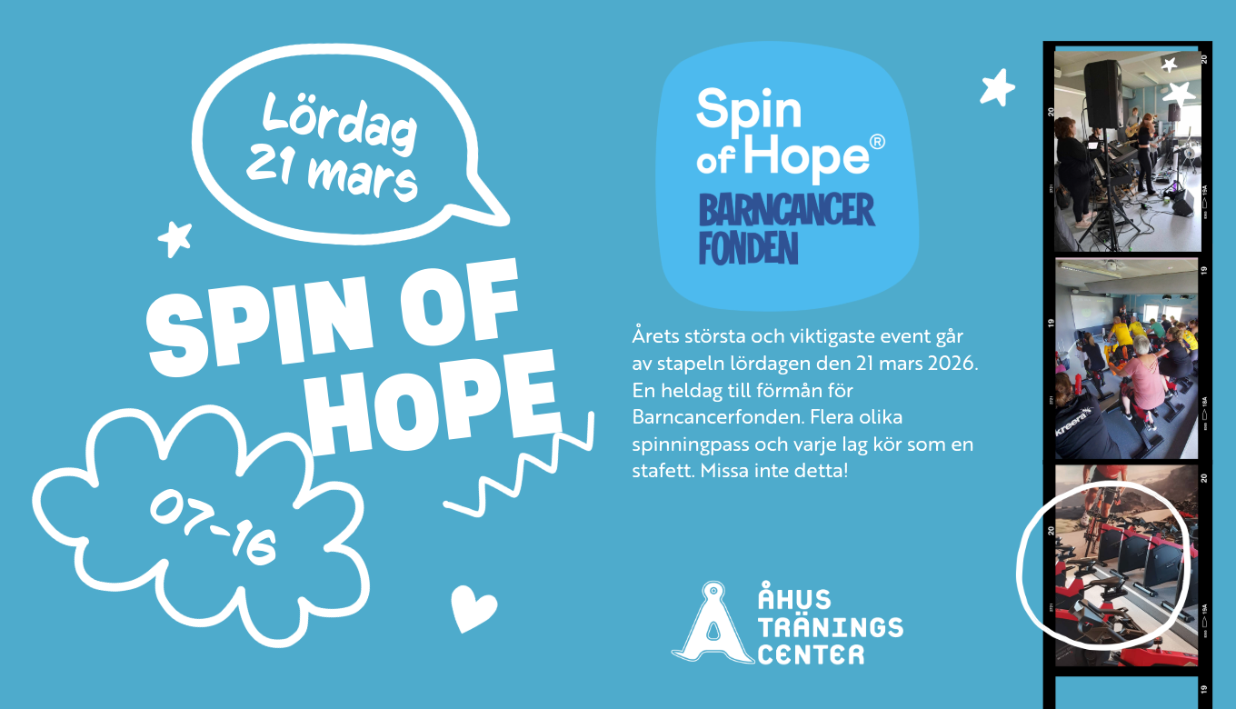 Den 21 mars öppnar vi dörrarna för årets viktigaste träningsdag – Spin of Hope till förmån för Barncancerfonden. Under åtta timmar fylls vår spinningsal av musik, energi och laganda när vi tillsammans gör skillnad för barn och familjer som kämpar mot cancer.