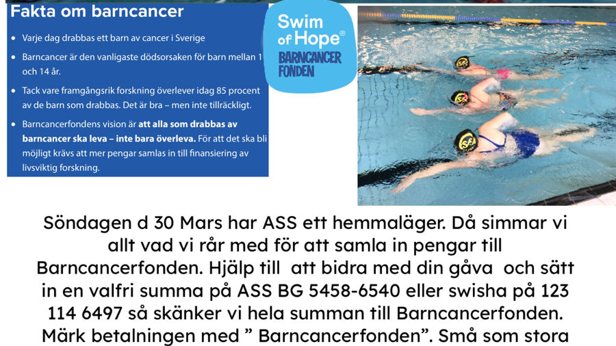 Leta upp din lokala simförening och sponsra dem idag! Ditt bidrag delas lika mellan Barncancerfonden och föreningen.