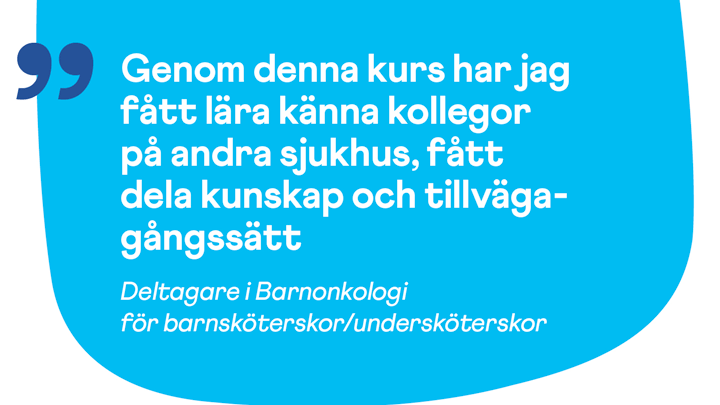 Är du sjuksköterska eller undersköterska och vill utbilda dig inom barnonkologi eller arbetar du redan inom området och vill vidareutbilda dig? Arbetar du som barnläkare och vill fördjupa dig inom olika barnonkologiska diagnoser eller arbeta med att stärka nationella samarbeten? Då är du välkommen att söka någon av våra utbildningar.