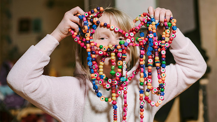 – Det har över 750 pärlor, säger hon stolt och visar dem en efter en.