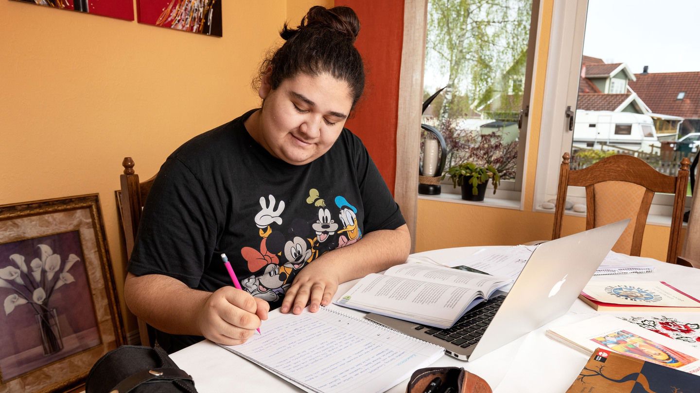 På grund av coronapandemin läser alla gymnasieelever på distans i vår. För Emilia Vega, som kämpar med svåra sena komplikationer efter sin ALL-behandling, innebär studier på distans en extra utmaning. Allt försvåras av att jag har koncentrationssvårigheter, minnesproblem och hjärntrötthet sedan jag var sjuk. Nu är det dessutom svårare att få hjälp med skolan, berättar Emilia.