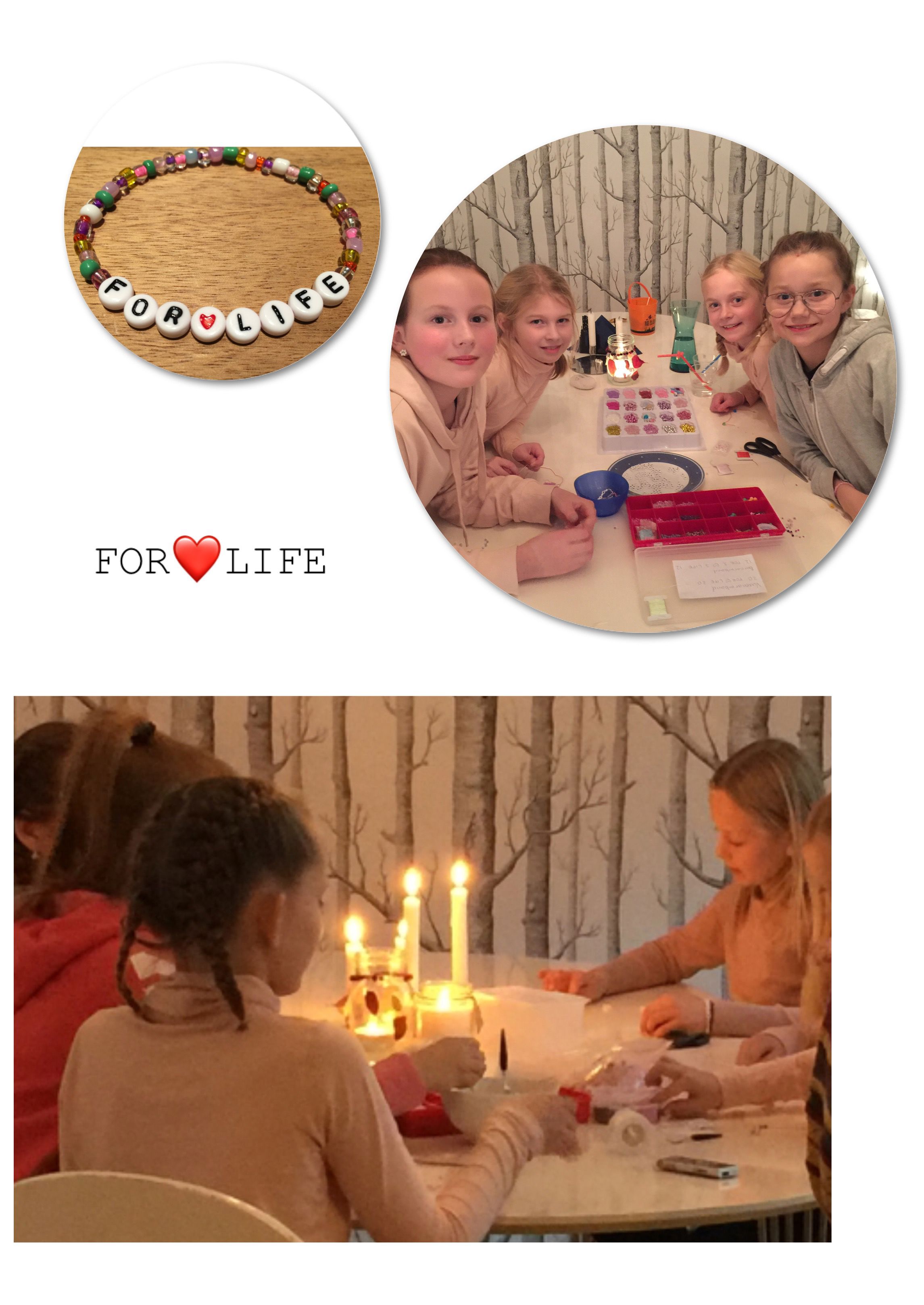 De 10-åriga vännerna Milla, Jonnah, Stina, Ida, Älva & Lilly vill göra en insats för att stötta drabbade barn och deras familjer. Vännerna pärlar FOR❤️LIFE-armband som de säljer för 30kr/st. Pengarna går till denna insamling.