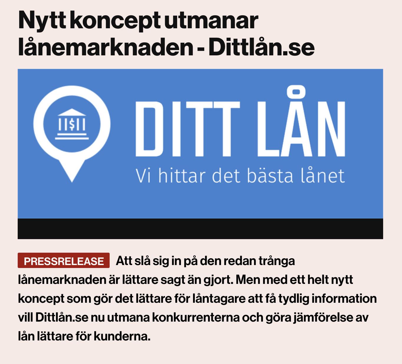 Läs mer från vårt senaste pressmeddelande om Ditt Lån.