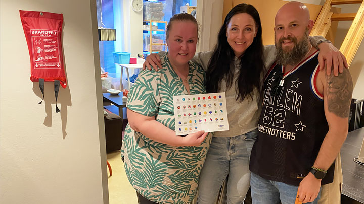 Överlämning. Hanne Stranden Bergman tar emot pärlor och annat material till SuperSnöret av tidigare ansvariga Marie Helin med sällskap.