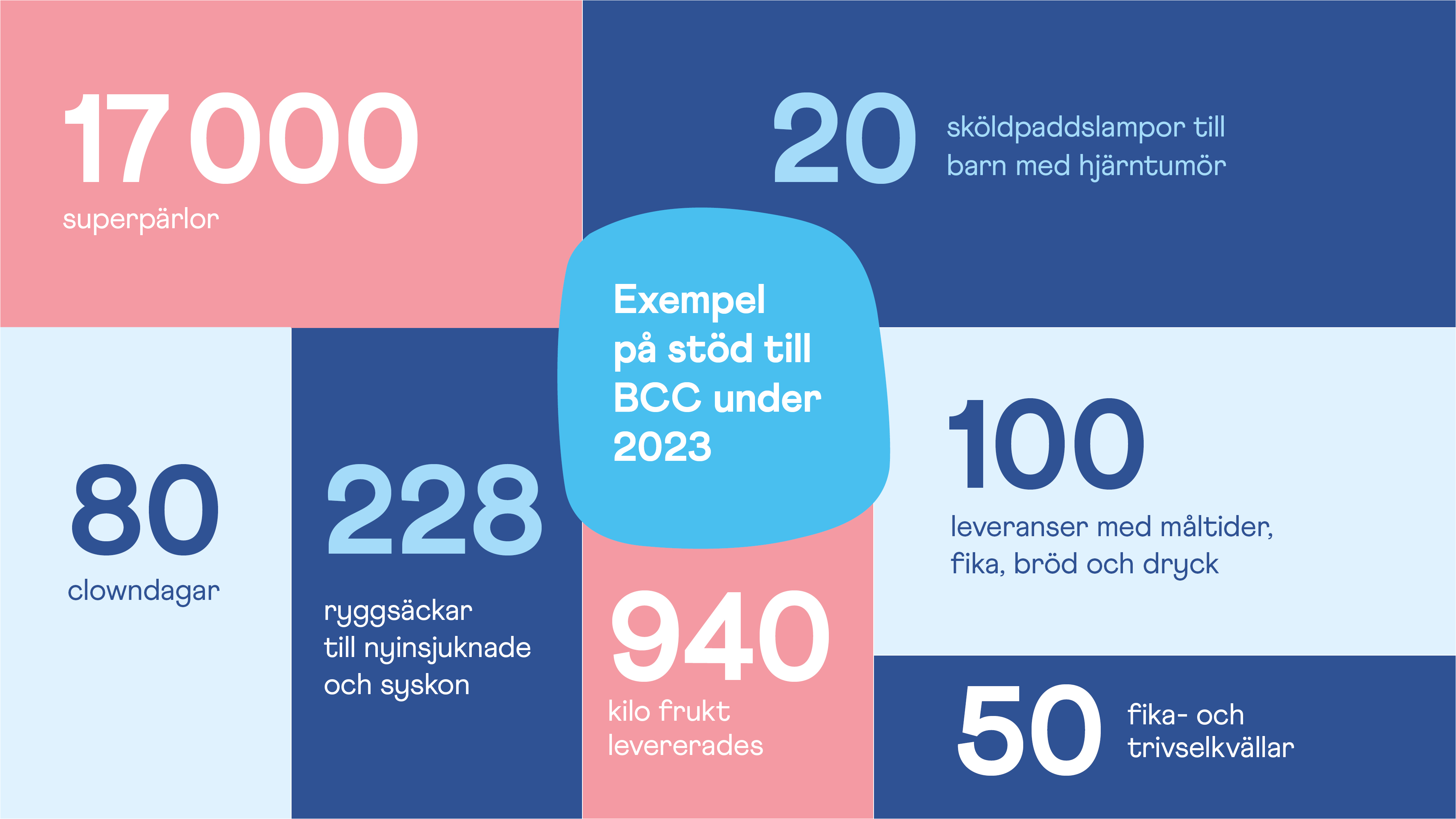 Några aktiviteter och vistelser som lyftes från föregående år var de femtio träffar som hölls för totalt 1300 barn och vuxna, de fyra mamma- och pappahelgerna som anordnats i Varberg, de ungdoms- och syskonträffar som arrangerats på Boda borg, Vi-som-mist-helgerna på Bokenäs samt insamlingsaktiviteter som Rock i Hjo och Hjulafton. Och när Erika presenterade nyckeltalen för 2023, var de såväl ekonomiska som exempel på vårt stöd till barncancerdrabbade familjer och Barncancercentrum.