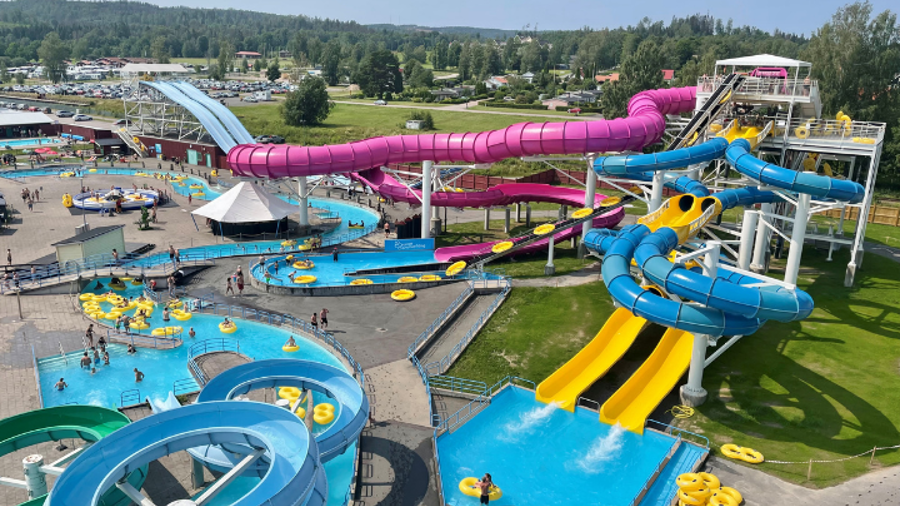 På området finns snabba och roliga vattenattraktioner för olika åldrar, och för barnfamiljer med yngre barn finns särskilda barnpooler med rutschkanor och porlande vatten. Sommarlandet ligger precis intill Sunne camping och parkering är gratis för alla besökare.