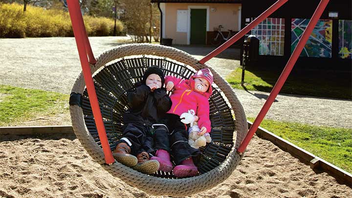 Det har gått 1,5 år sedan Elin blev sjuk. Vi sitter och pratar i Vikingsbergsparken, ett stenkast från familjens lägenhet i centrala Helsingborg. Vårsolen glittrar över Öresund. Storebror Gabriel kollar sin mobil medan Elin leker i sandlådan. Bortifrån gungorna hojtar lillebror Melwin att mamma ska putta på hans gunga.