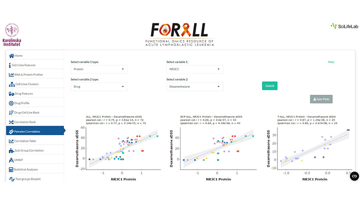 – Man kan se hur olika subtyper av ALL svarar på ett visst läkemedel eller om de är extra känsliga mot vissa klasser av läkemedel. I verktyget kan vi göra egna grupperingar och analyser samt studera relationen mellan läkemedelskänslighet och nivåerna av specifika proteiner för att se vad som kan styra resistens.