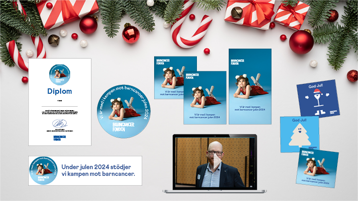 ett större kampanj-kit, en julig tackfilm och årets digitala julkort. Med innehållet kan ... för era kunder, leverantörer och anställda. Barn och cancer är två ord som aldrig borde